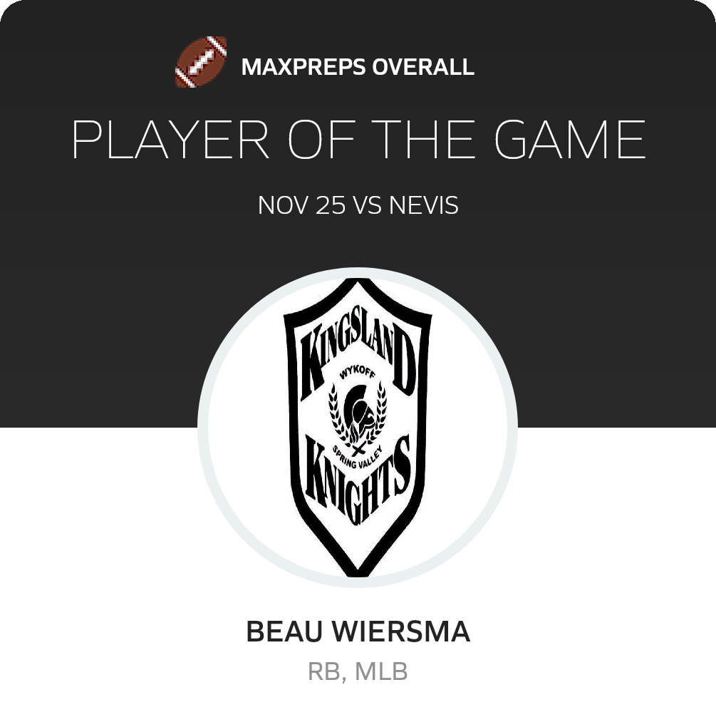 November 25, 2023: Nevis, MN 56467 The Nevis Tigers football squad scored 14 points and restricted the visiting Kingsland Knights to 12 in the Tigers non-league victory on Saturday.