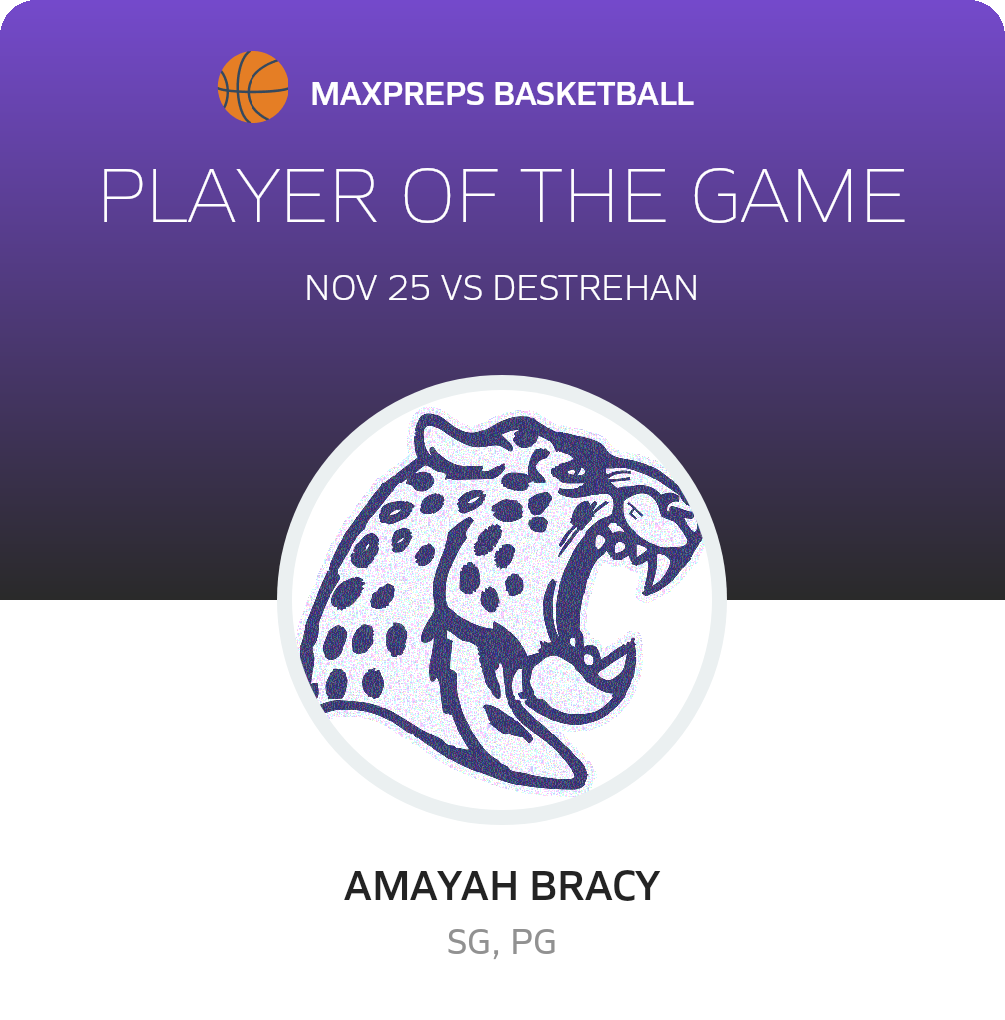Congratulations to #2 Amayah Bracy for being selected the Blount Girls Basketball Player of the Game.