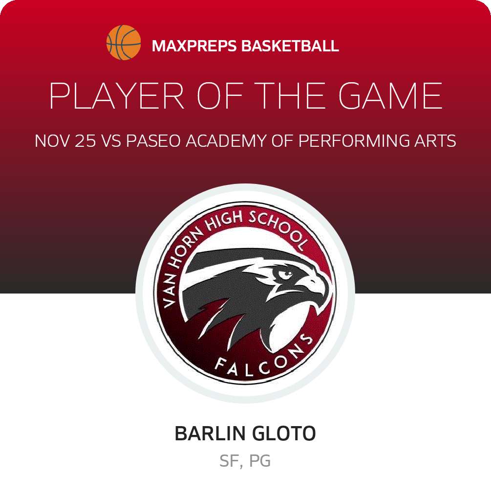 Congratulations to #10 Barlin Gloto for being selected the Van Horn Girls Basketball Player of the Game.
