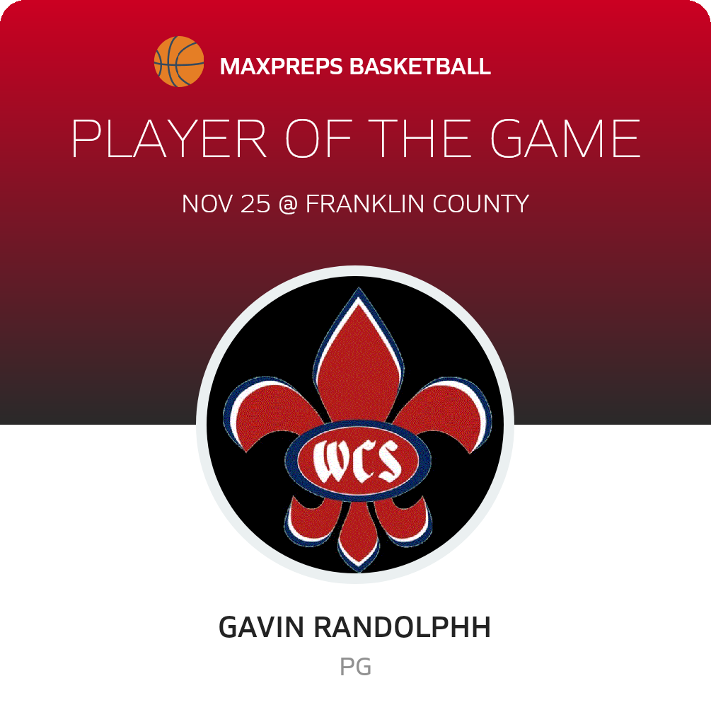 Congratulations to #1 Gavin Randolphh for being selected the Wakulla Christian School JV Basketball Player of the Game.