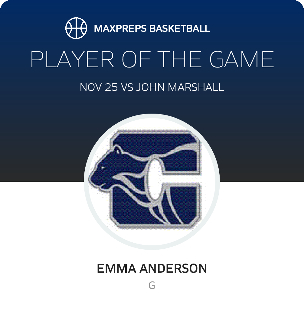 Congratulations to #1 Emma Anderson for being selected the Century Girls JV Basketball Player of the Game.