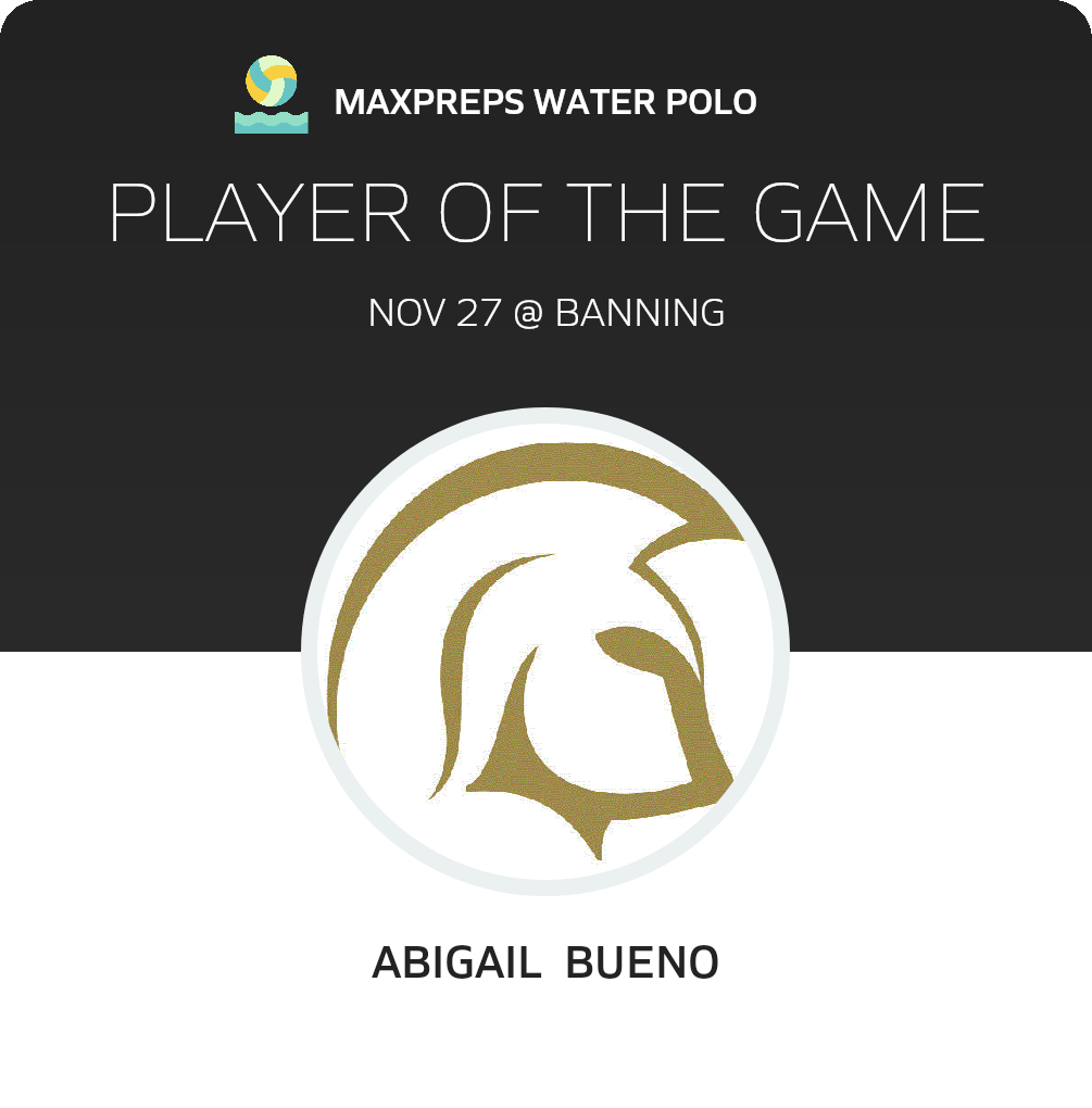 Congratulations to #7 Abigail Bueno for being selected the Marquez Girls Water Polo Player of the Game.