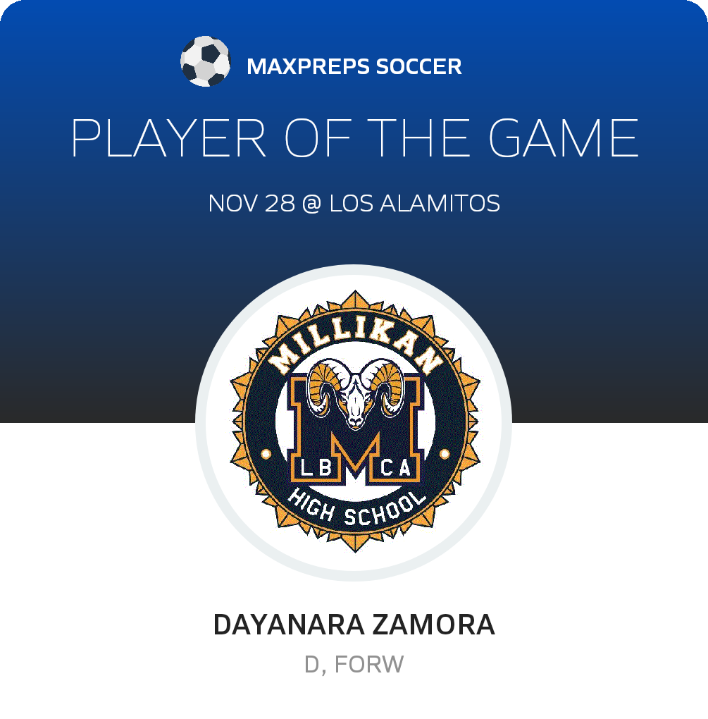 Congratulations to #10 Dayanara Zamora for being selected the Millikan Girls Freshman Soccer Player of the Match.