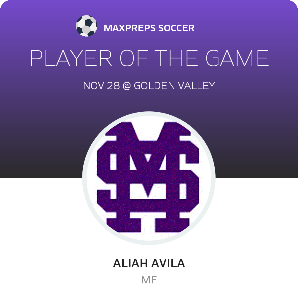 Congratulations to #10 Aliah Avila for being selected the Madera South Girls Soccer Player of the Match.