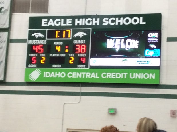 November 28, 2023: Eagle, ID 83616 The Eagle Mustangs basketball team scored 47 points and held the visiting Minico Spartans to 39 in the Mustangs non-league triumph on Tuesday.