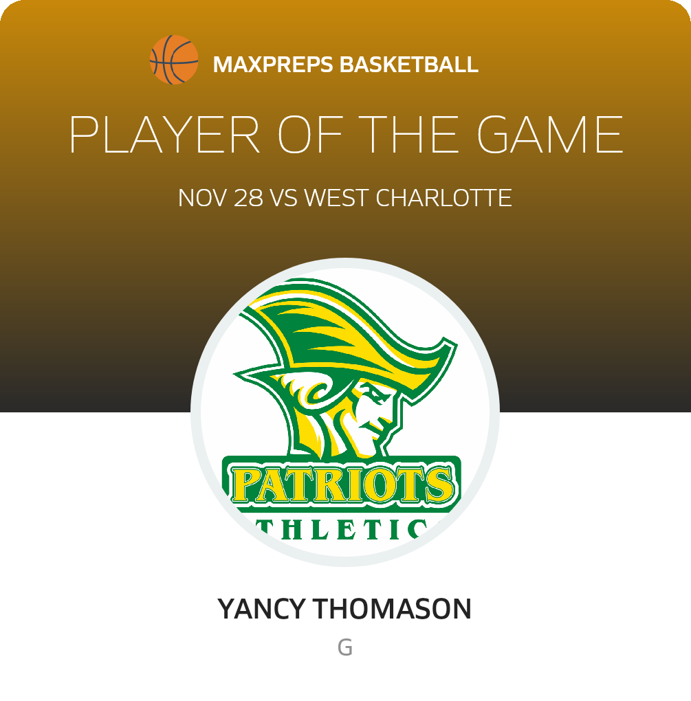 In their next game, the Patriots meet the South Mecklenburg Sabres (Charlotte, NC) in a non-league match, on Thursday, November 30. Independence will attempt to better on its 2-1 season record. The Sabres enter the match with a 3-0 record after their 62-46 non-league win over Cuthbertson (Waxhaw, NC).