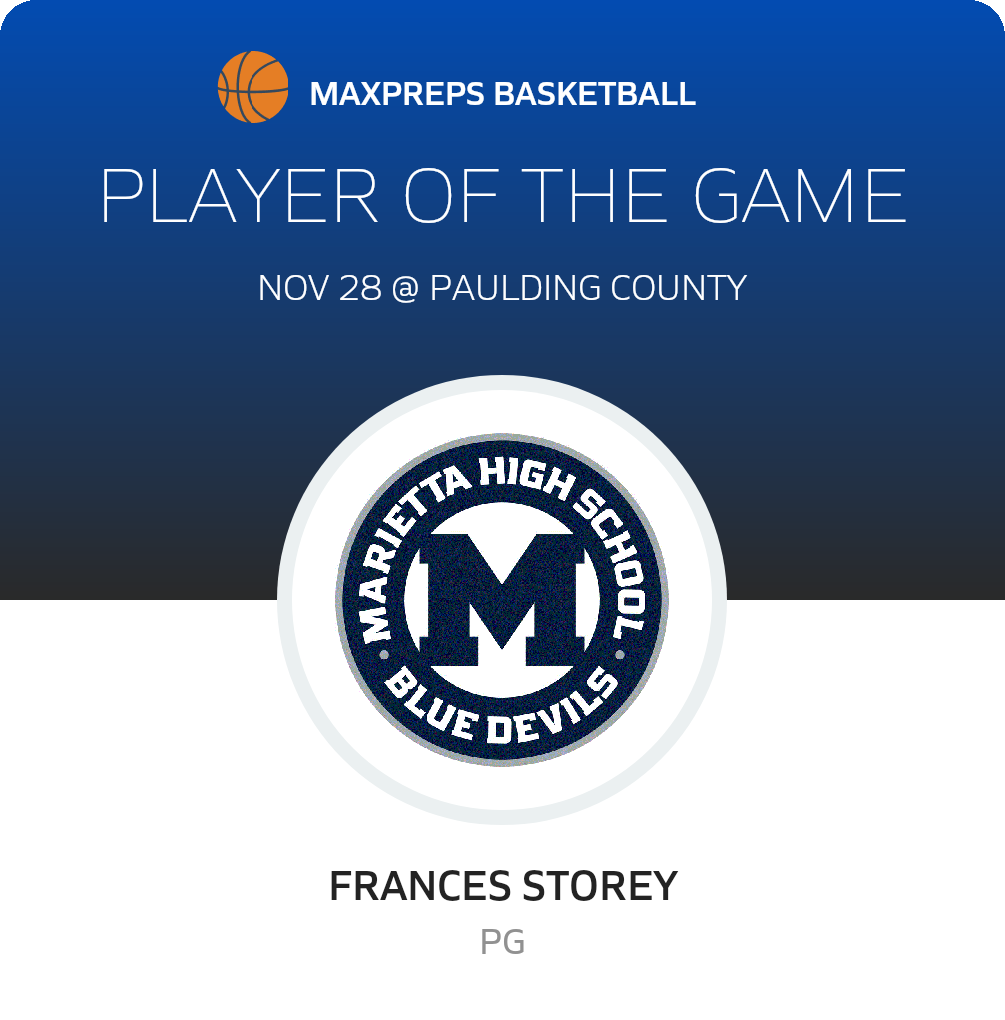 With the victory, Marietta upgrades its record to 3-2 on the campaign. The Blue Devils travel to Woodstock (Woodstock, GA) to play the Wolverines in a non-league bout on Friday, December 1. The Wolverines come into the bout with a record of 1-3. Woodstock lost 69-47 in their recent non-league bout against Cherokee (Canton, GA)
