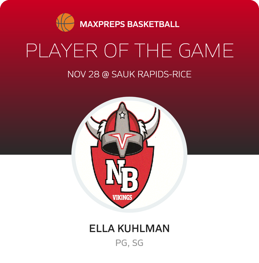 November 28, 2023: Sauk Rapids, MN 56379 In Tuesday's non-league outing, the Sauk Rapids-Rice Storm (Sauk Rapids, MN) basketball squad felled the visiting North Branch Vikings (North Branch, MN), by a margin of 57-47.