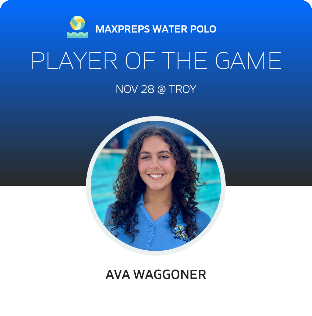 Congratulations to #1 Ava Waggoner for being selected the Walnut Girls JV Water Polo Player of the Game.