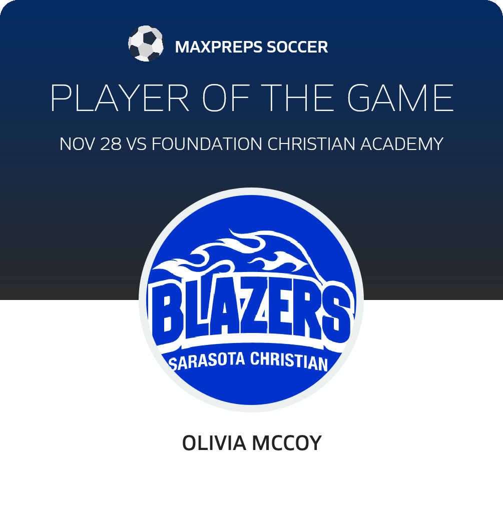 In their next game, the Blazers battle the Southwest Florida Christian King's (Fort Myers, FL) in a non-league bout, on Friday, December 1. Sarasota Christian will attempt to move on its 1-2 season record. The King's go into the bout with a 1-3 record after their 1-0 non-league win over Lehigh (Lehigh Acres, FL).