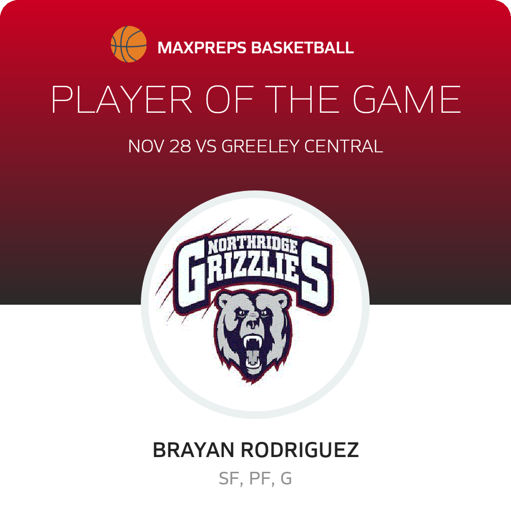 Congratulations to #10 Brayan Rodriguez for being selected the Northridge JV Basketball Player of the Game.