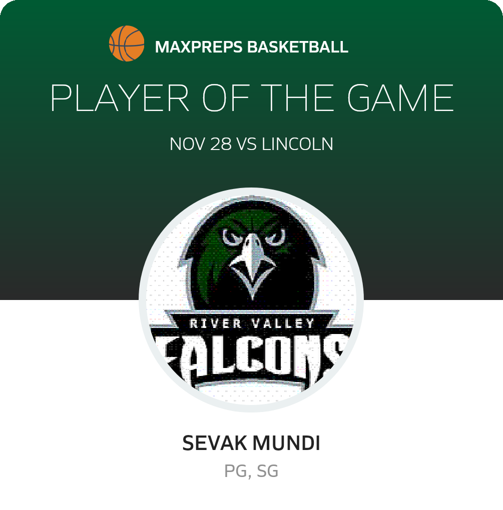 In their next game, the Falcons meet the Monte Vista Mustangs (Danville, CA) in a non-league match, on Thursday, November 30. River Valley will attempt to better on its 2-0 season record. The Mustangs enter the match with a 0-1 record after their 70-68 non-league loss to Freedom (Oakley, CA).