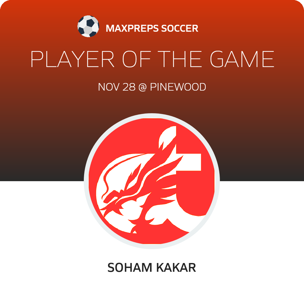 Congratulations to #9 Soham Kakar for being selected the Design Tech Soccer Player of the Match.