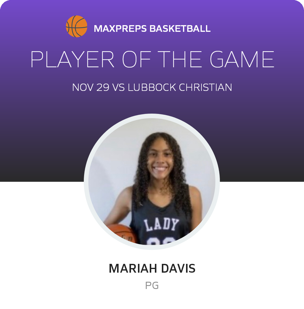 Congratulations to #23 Mariah Davis for being selected the Midland Classical Academy Girls Basketball Player of the Game.