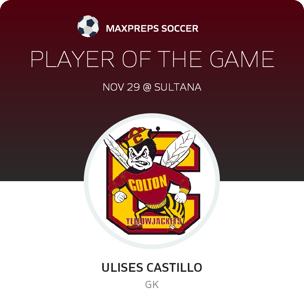 Congratulations to #1 Ulises Castillo for being selected the Colton Soccer Player of the Match.
