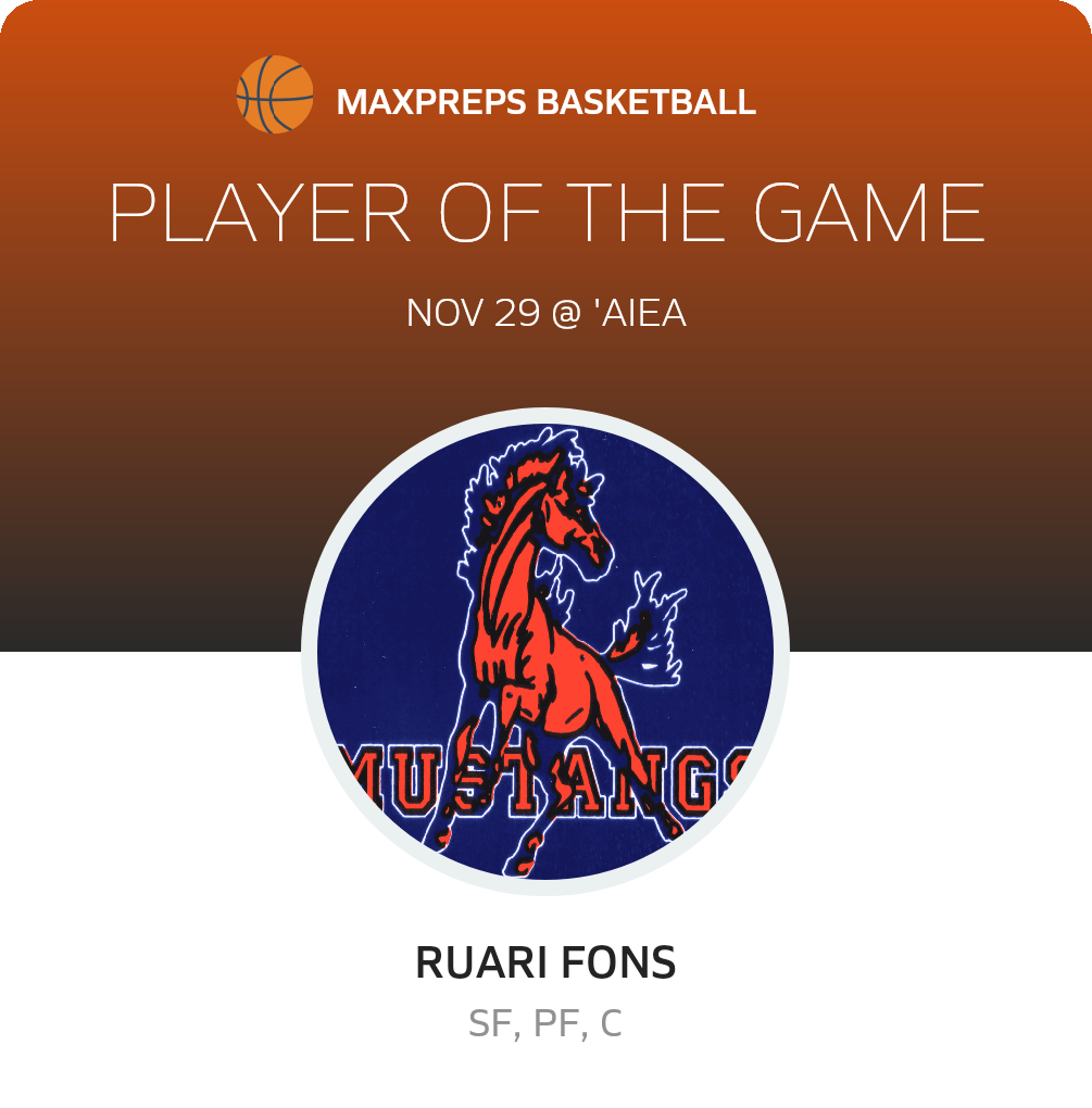 November 29, 2023: 'Aiea, HI 96701 The 'Aiea Na Alii basketball team ('Aiea, HI), dropped 36-28 in Wednesday's non-league battle with the visiting Kalaheo Mustangs (Kailua, HI)