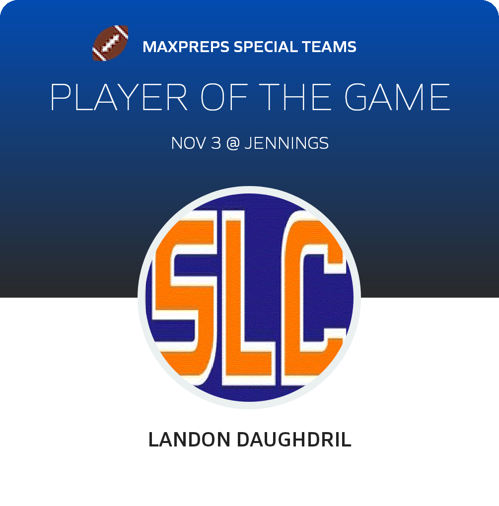 November 3, 2022: Jennings, LA 70546 In Thursday's league game, the St. Louis Catholic Saints (Lake Charles, LA) football team were victorious over the host Jennings Bulldogs (Jennings, LA), by a score of 31-21.