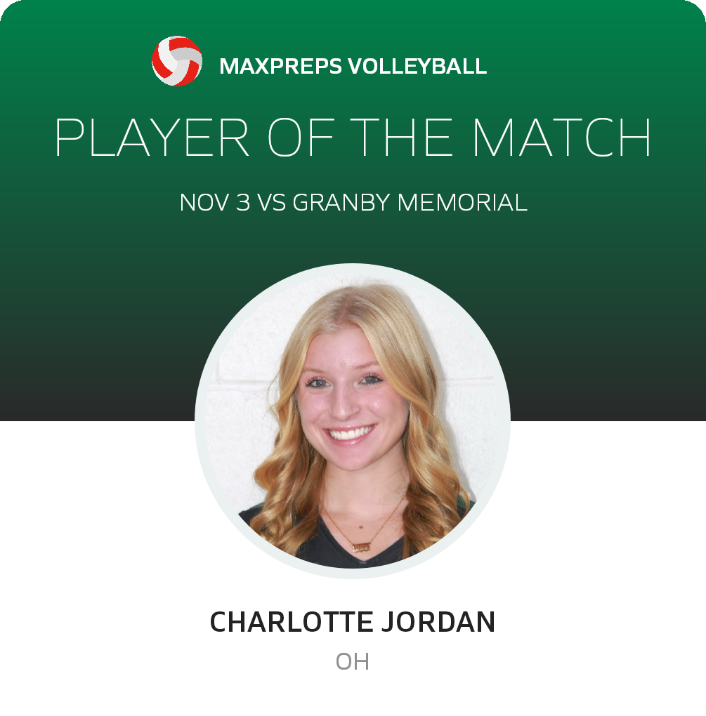 Congratulations to #21 Jayne Hiatt for being selected the Granby Memorial Volleyball Player of the Match.