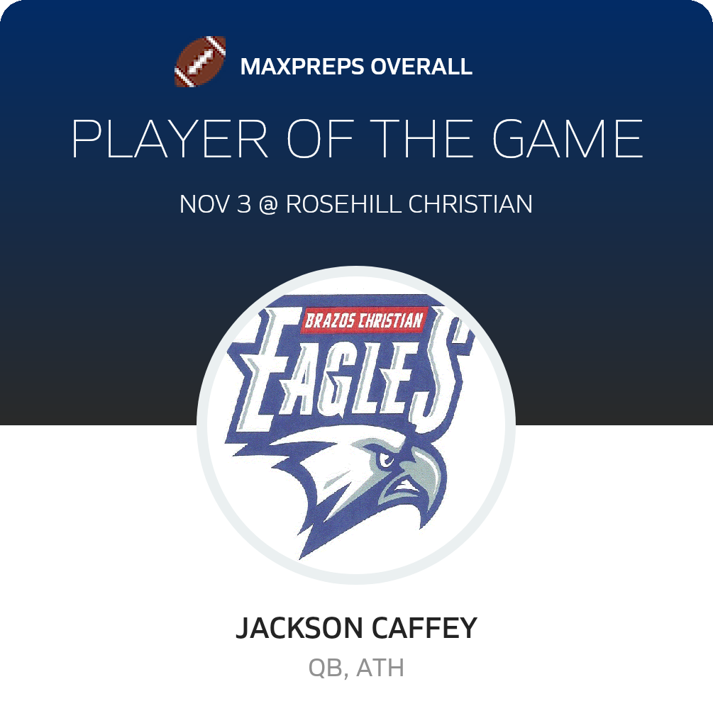 November 3, 2023: Tomball, TX 77377 The Brazos Christian Eagles (Bryan, TX) football overcame the host Rosehill Christian Eagles (Tomball, TX), 42-21 in Friday's league bout.