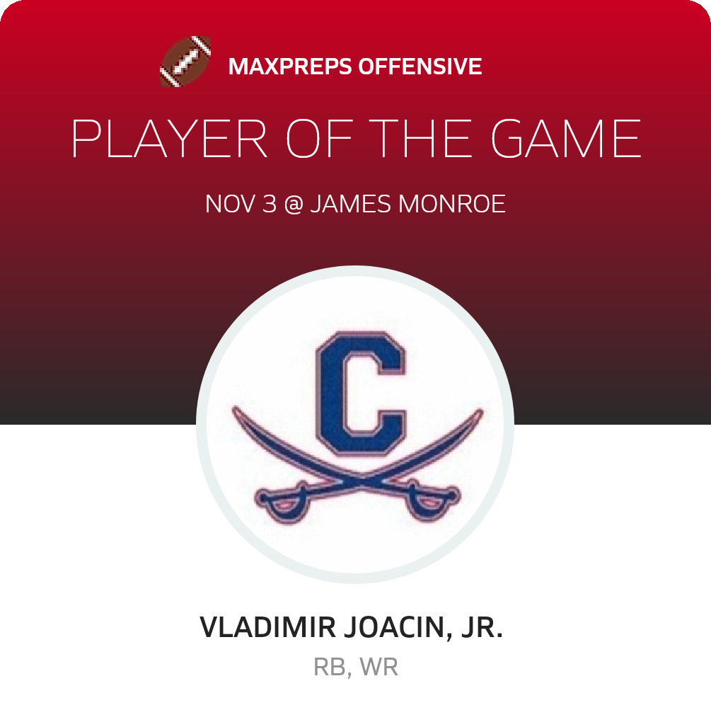 November 3, 2023: Fredericksburg, VA 22401 In Friday's league game, the Caroline Cavaliers (Milford, VA) football team knocked off the host James Monroe Yellow Jackets (Fredericksburg, VA), by a final score of 56-27.