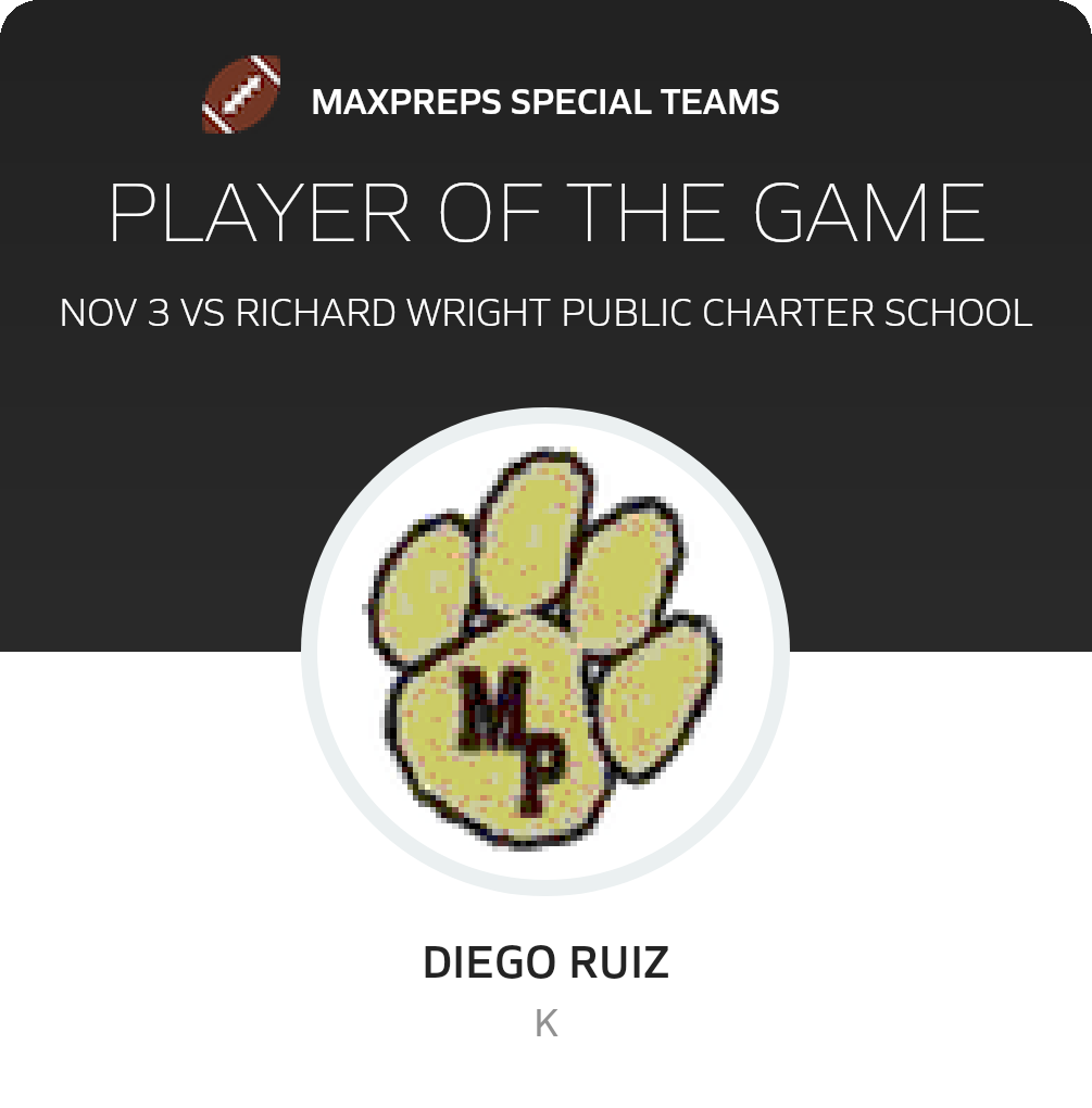November 3, 2023: Manassas Park, VA 20111 The Manassas Park Cougars football squad scored 49 points and limited the visiting Richard Wright Public Charter School Spartans to 27 in the Cougars non-league win on Friday.