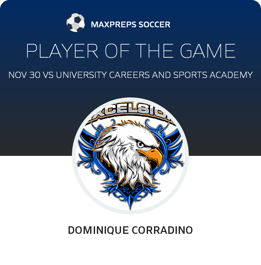 Congratulations to #13 Dominique Corradino for being selected the Excelsior Charter Girls Soccer Player of the Match.