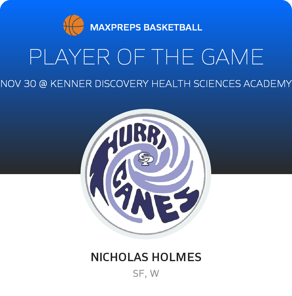 Congratulations to #21 Nicholas Holmes for being selected the South Plaquemines JV Basketball Player of the Game.