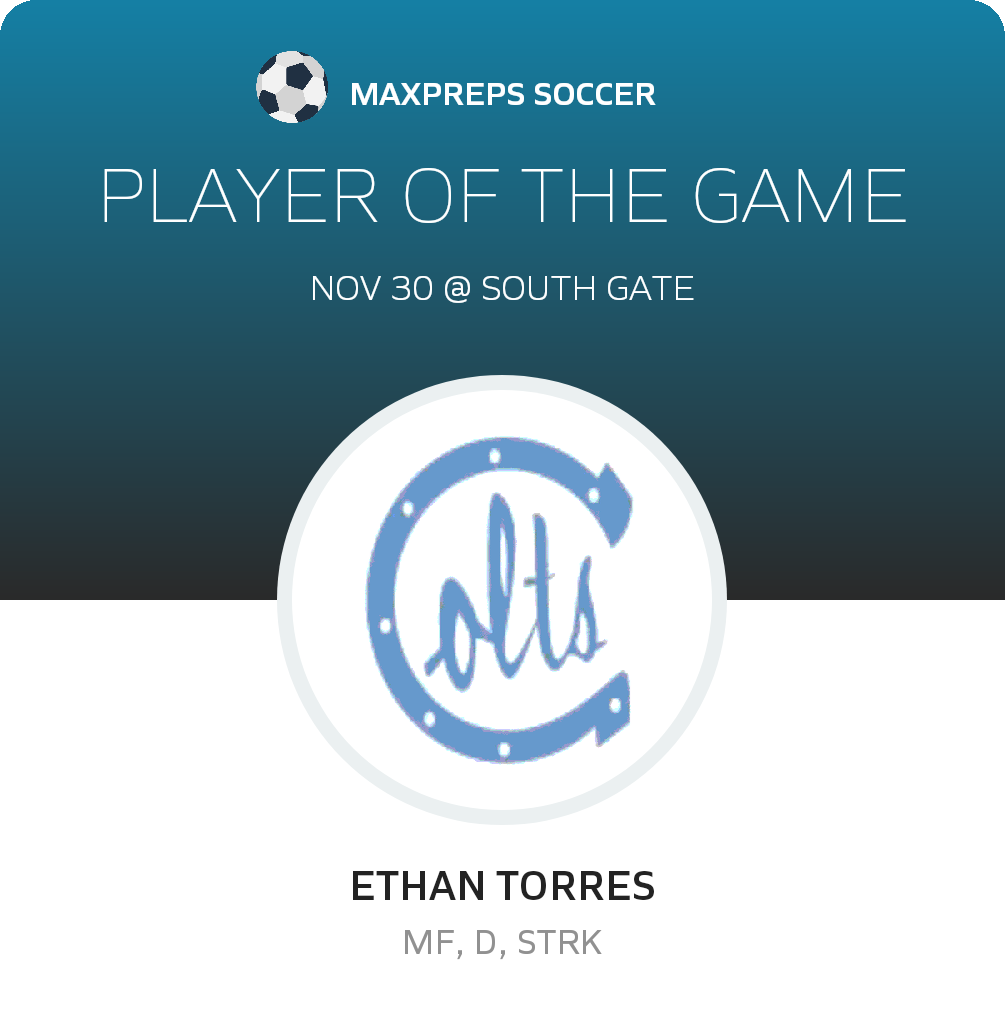 Congratulations to #11 ETHAN TORRES for being selected the Carson JV Soccer Player of the Match.