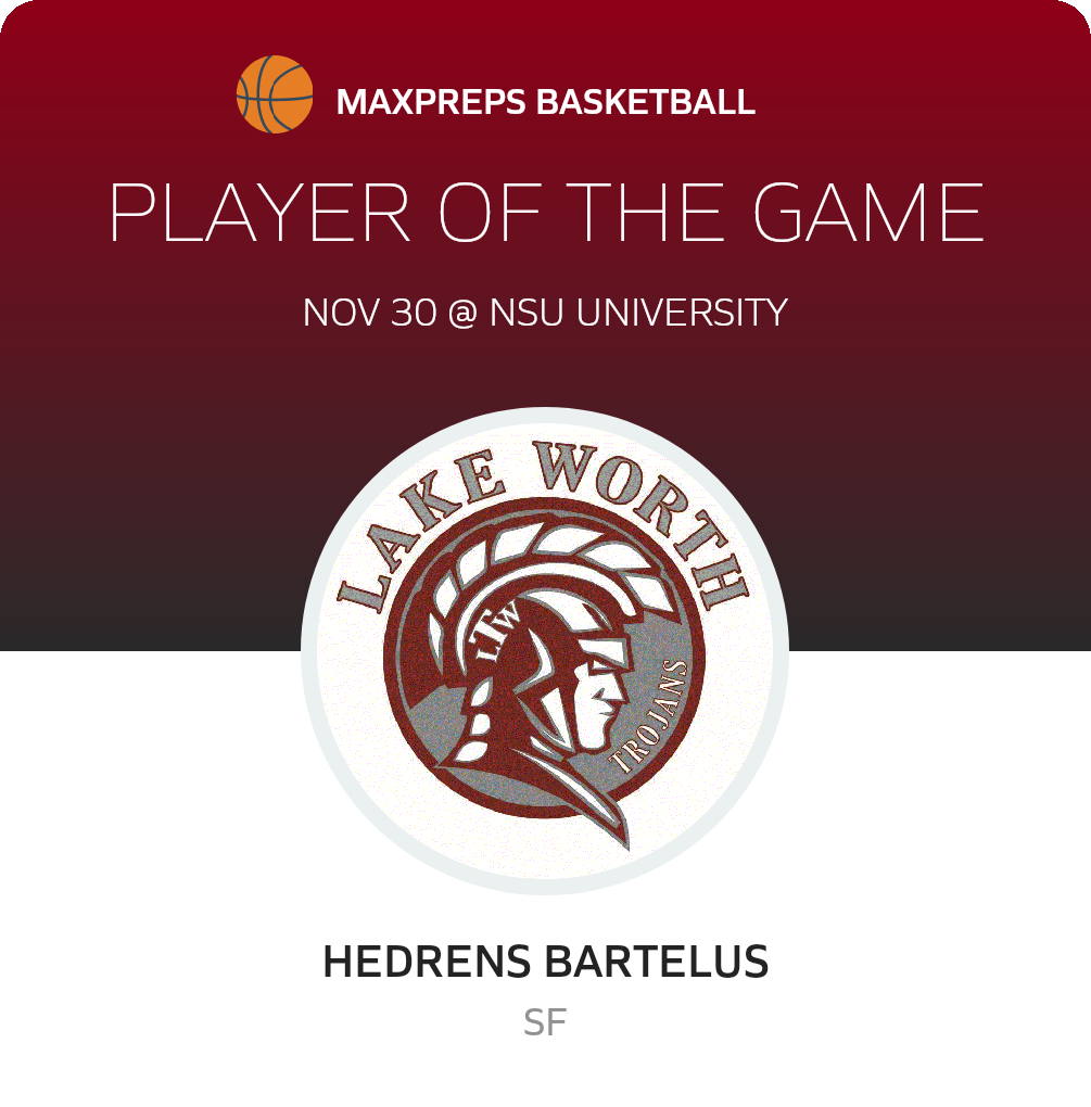 November 30, 2023: Fort Lauderdale, FL 33314 In Thursday's non-league outing, the Lake Worth Trojans (Lake Worth, FL) basketball squad edged the host NSU University Sharks (Fort Lauderdale, FL), by a count of 60-56.