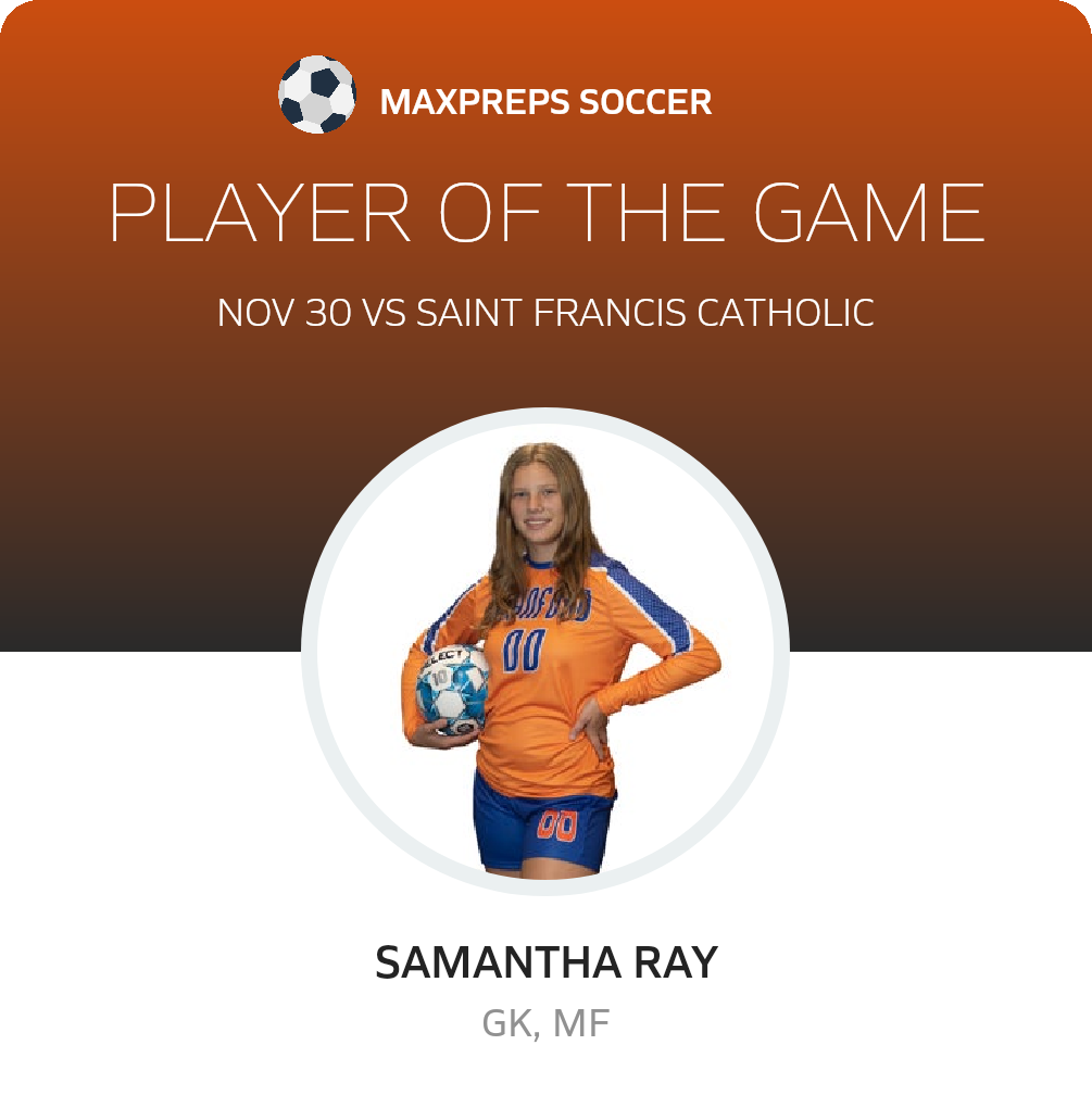Congratulations to #0 Samantha Ray for being selected the Branford Girls Soccer Player of the Match.