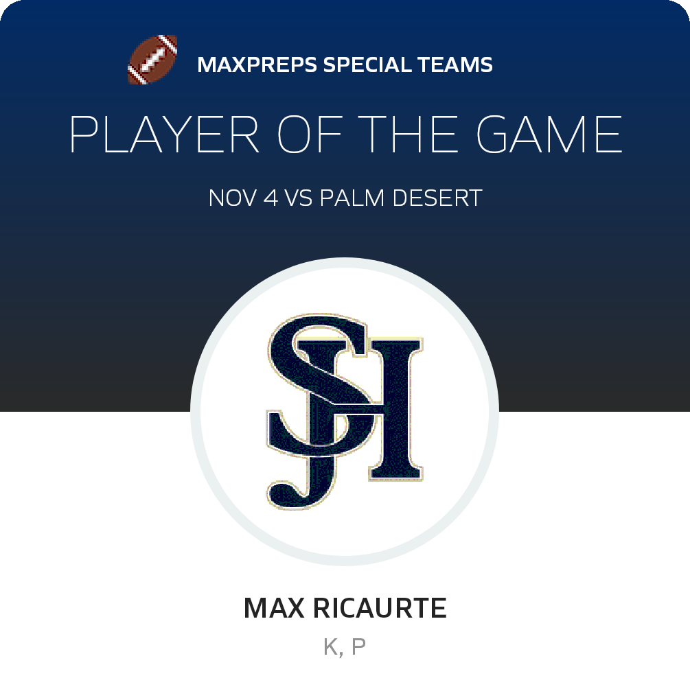 In their next game, the Stallions clash with the Orange Panthers (Orange, CA) in a non-league match, on Friday, November 11. San Juan Hills will attempt to move on its 4-7 season record. The Panthers enter the match with a 9-2 record after their 34-28 non-league win over Huntington Beach (Huntington Beach, CA).