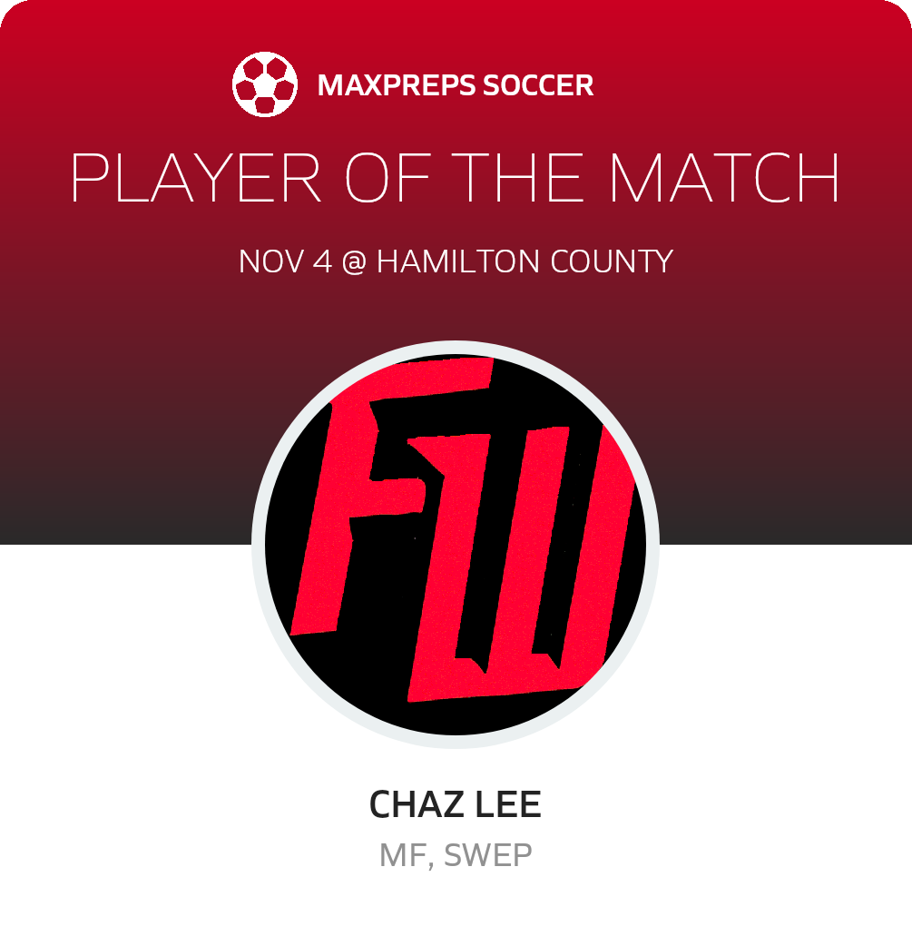 Congratulations to #8 Chaz Lee for being selected the Fort White Soccer Player of the Match.