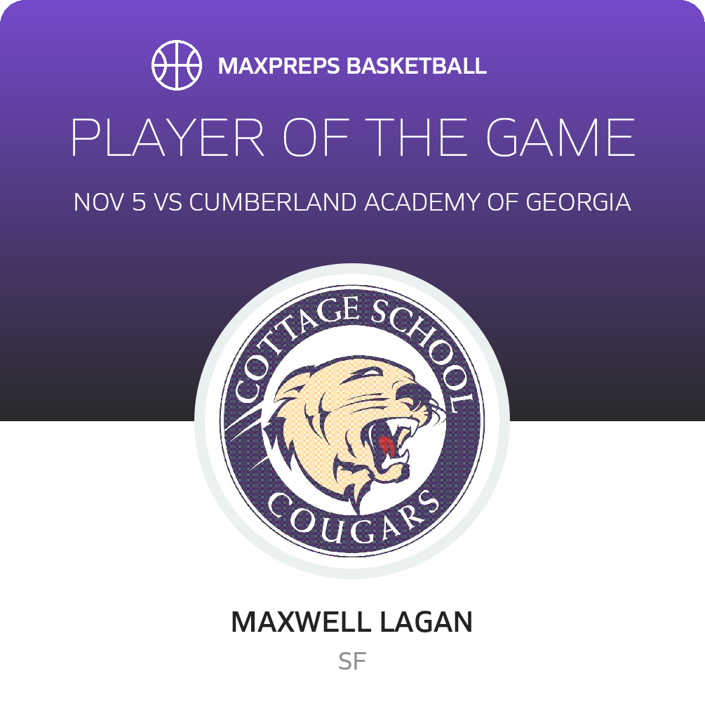 November 5, 2025: Roswell, GA 30075 In Wednesday's league test, the Cottage Cougars (Roswell, GA) basketball squad trounced the visiting Cumberland Academy of Georgia Cyclones (Atlanta, GA), by a score of 67-45.