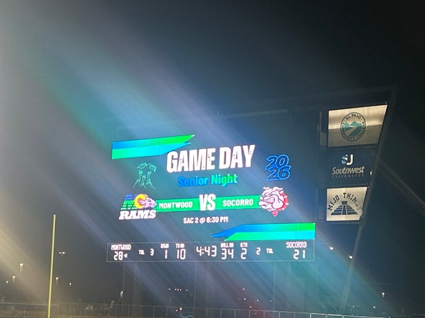 The Montwood (El Paso, TX) varsity football team won Thursday's home conference game against Socorro (El Paso, TX) by a score of 56-49.