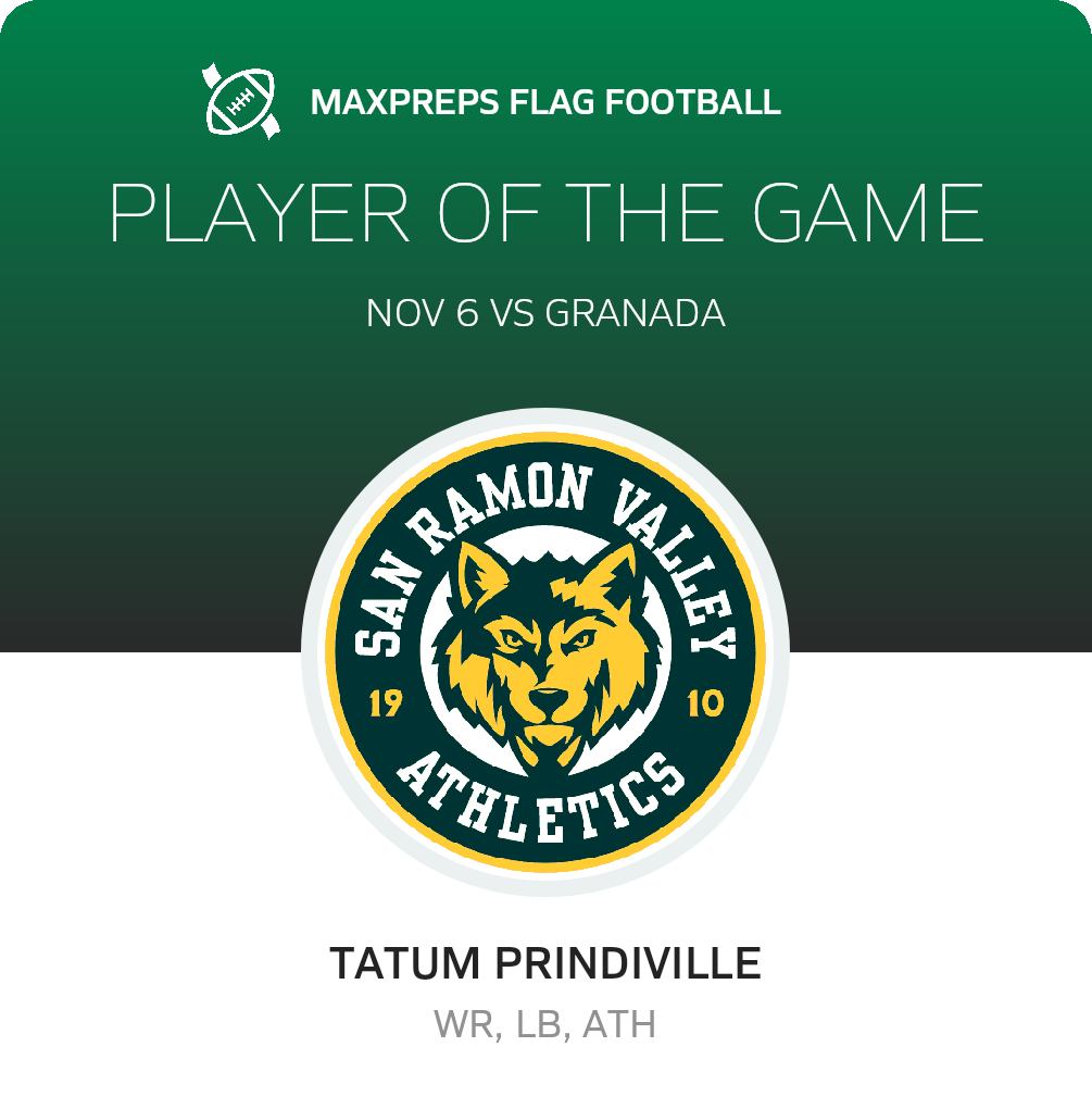 November 6, 2025: Danville, CA 94526 The San Ramon Valley Wolves flag football squad scored 14 points and limited the visiting Granada Matadors to 7 in the Wolves non-league triumph on Thursday.