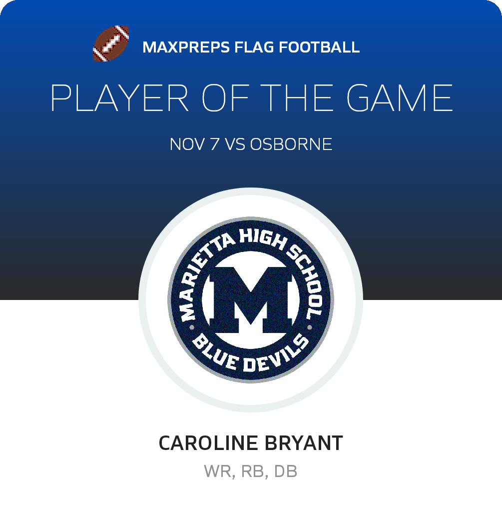 Congratulations to #7 Caroline Bryant for being selected the Marietta Girls Flag Football Player of the Game.