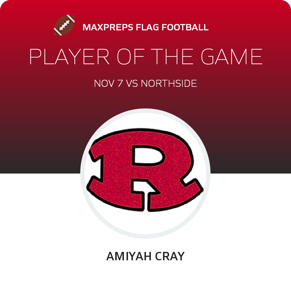 Congratulations to #8 Amiyah Cray for being selected the Warner Robins Girls Flag Football Player of the Game.