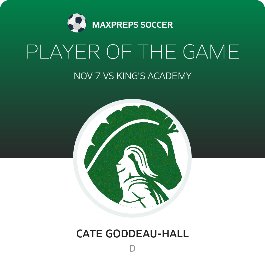 Congratulations to #14 Cate Goddeau-Hall for being selected the Suncoast Girls JV Soccer Player of the Match.