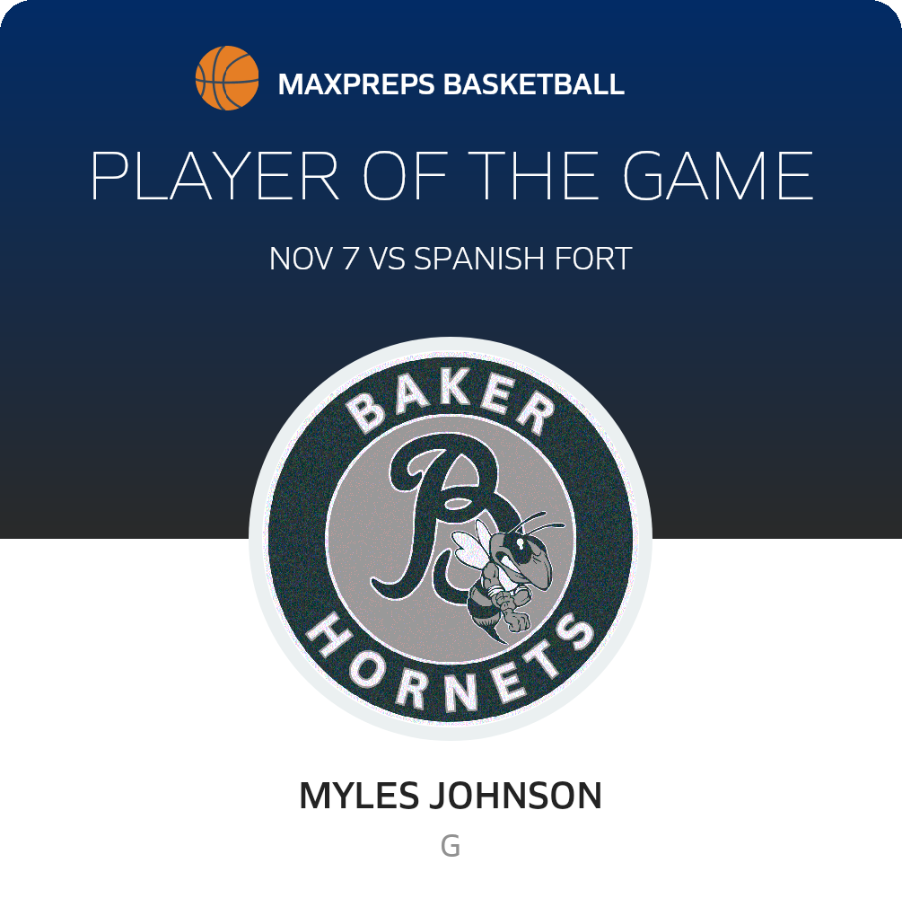 Congratulations to #12 Myles Johnson for being selected the Baker JV Basketball Player of the Game.