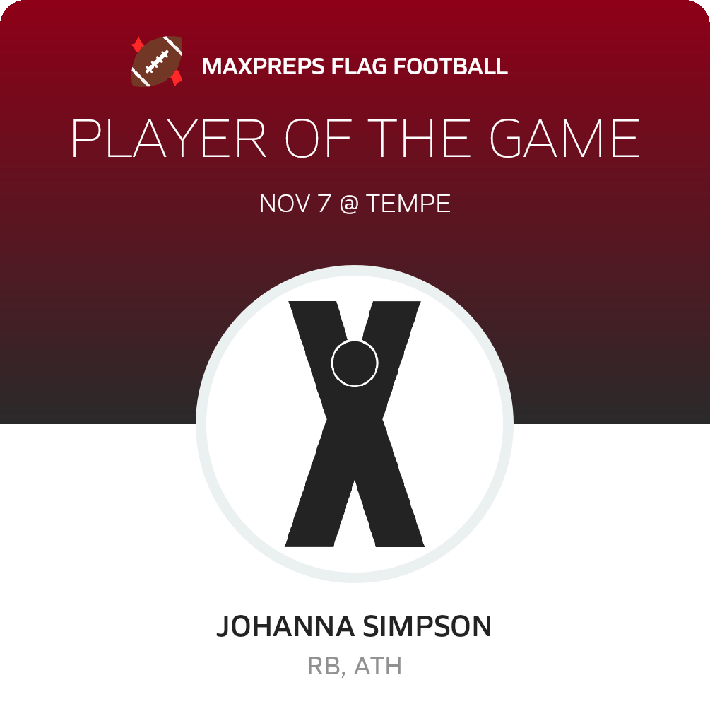 Congratulations to #1 Johanna Simpson for being selected the Nogales Girls Flag Football Player of the Game.