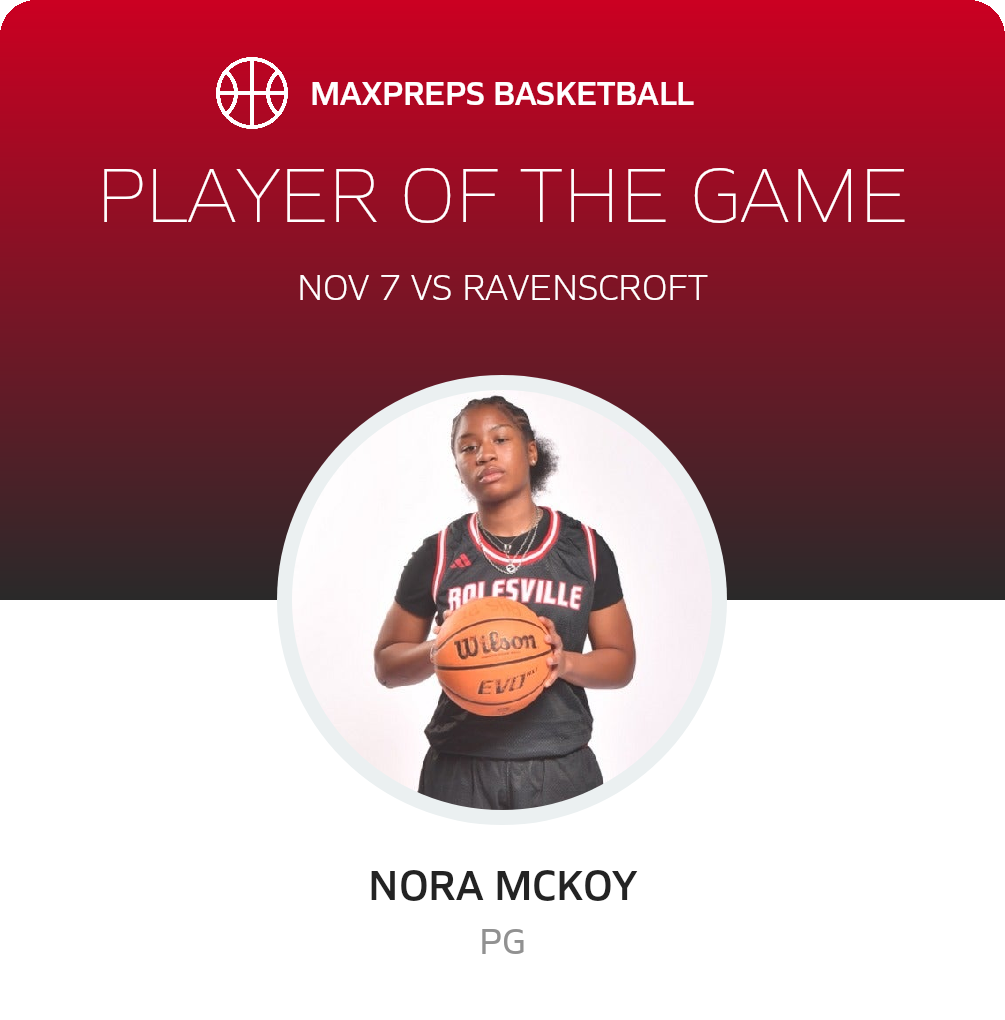 Congratulations to #1 Nora McKoy for being selected the Rolesville Girls JV Basketball Player of the Game.