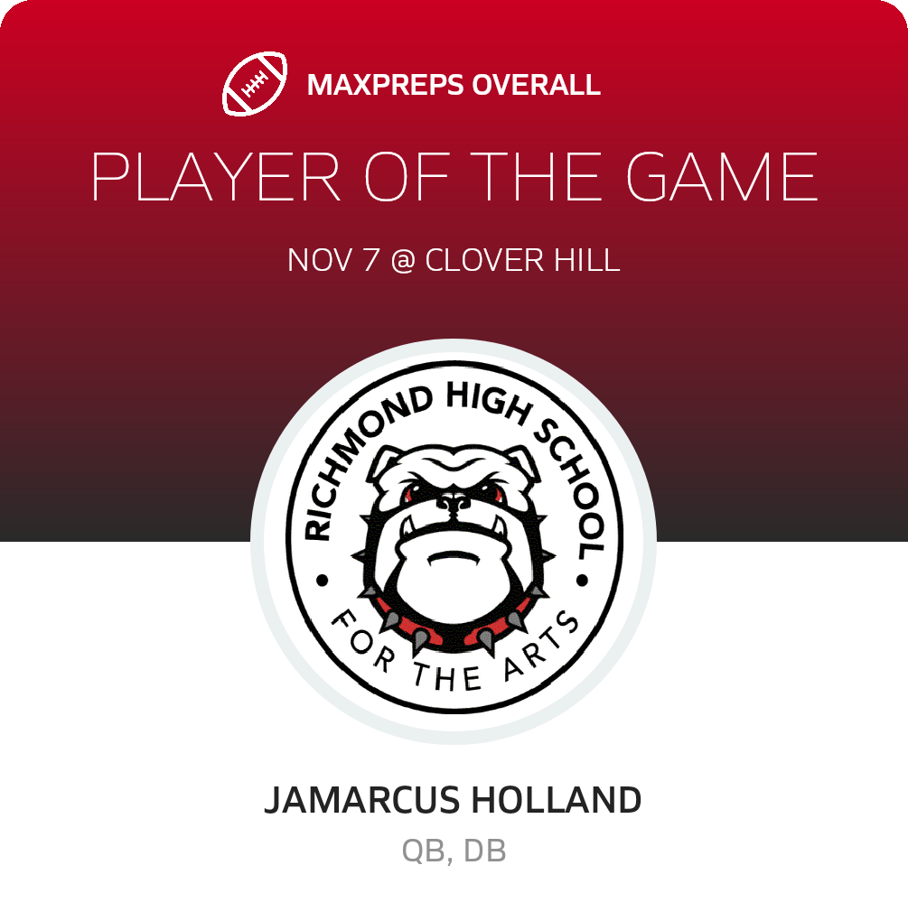 November 7, 2025: Midlothian, VA 23112 The Richmond High School for the Arts Bulldogs football squad scored 14 points and limited the host Clover Hill Cavaliers to 12 in the Bulldogs league triumph on Friday.