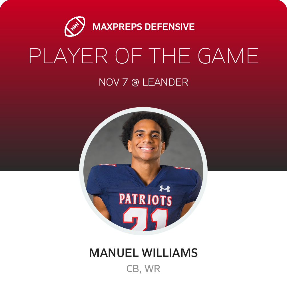 November 7, 2025: Leander, TX 78641 East View Patriots (Georgetown, TX) boosters were content Friday as they observed their football squad smash the host Leander Lions (Leander, TX), 50-13 in a league match.