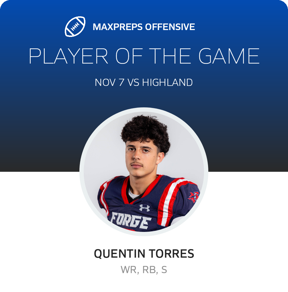 Congratulations to #3 Quentin Torres for being selected the Offensive Forge Christian Football Player of the Game.