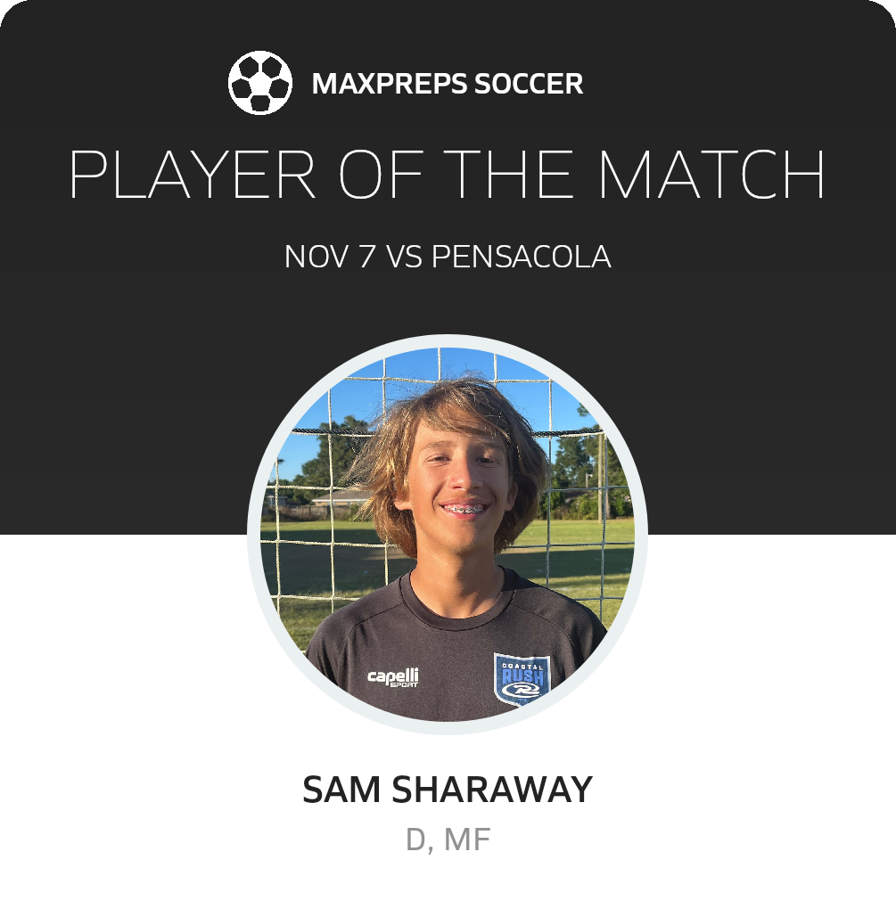 Congratulations to #30 Sam Sharaway for being selected the West Florida JV Soccer Player of the Match.