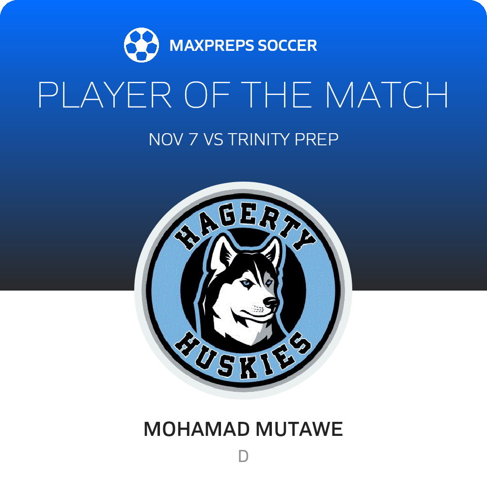 Congratulations to #6 Mohamad Mutawe for being selected the Hagerty Soccer Player of the Match.