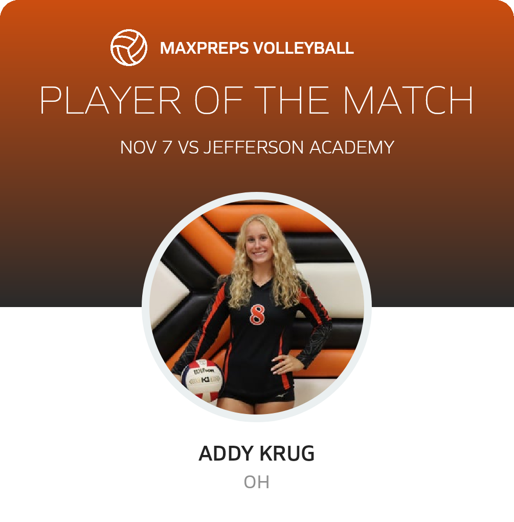 November 7, 2025: Broomfield, CO 80020 In Friday's non-league match, the Lamar Thunder (Lamar, CO) volleyball squad tipped the host Jefferson Academy Jaguars (Broomfield, CO), by a count of 3-2.