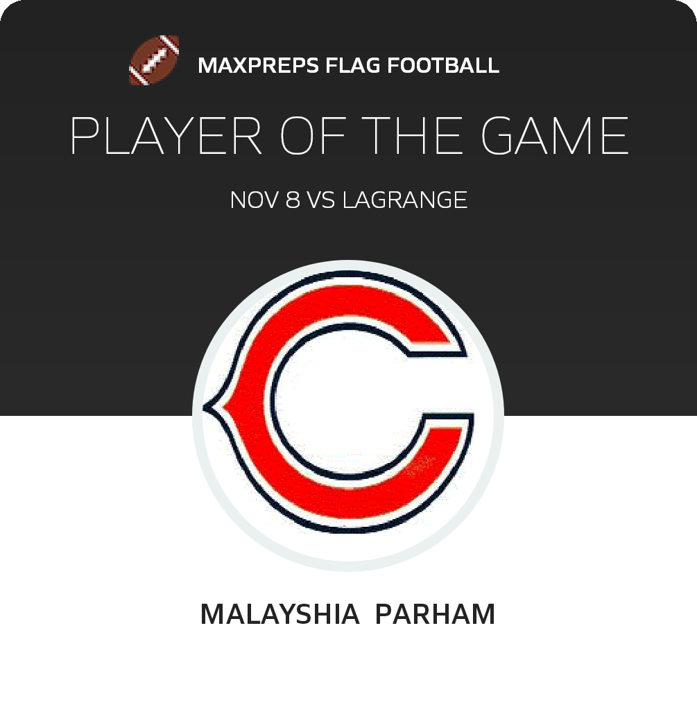 Congratulations to #2 Malayshia Parham for being selected the Callaway Girls Flag Football Player of the Game.