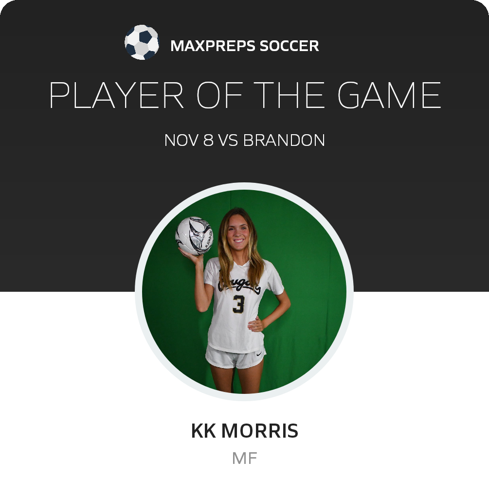 Congratulations to #3 Kk Morris for being selected the Northwest Rankin Girls Soccer Player of the Match.