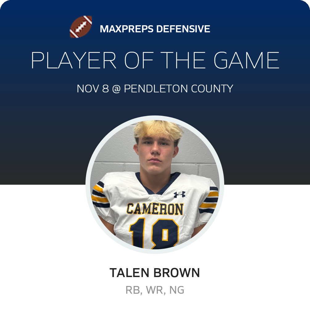 The Dragons now sport a 9-1 record. They take the field next when they host Greenbrier West for a non-league outing on Friday, November 15. Cameron will clash with a Cavaliers squad coming off a 49-8 league loss to Midland Trail (Hico, WV). The Cavaliers record now stands at 5-5.